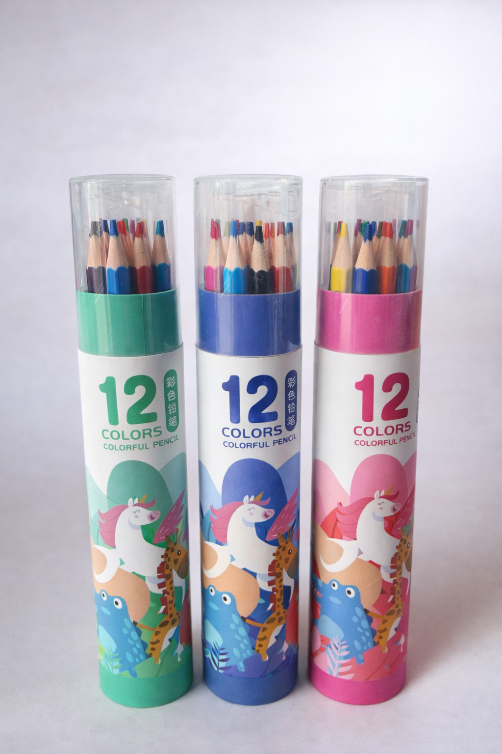 Set 12 crayons couleur dan enn boîte solide ek facile pou transporte 🎒 Parfait pou l’école, dessin ek activité créatif. Couleur vif, ek design cute ki bann zenfan pou ador ✏️