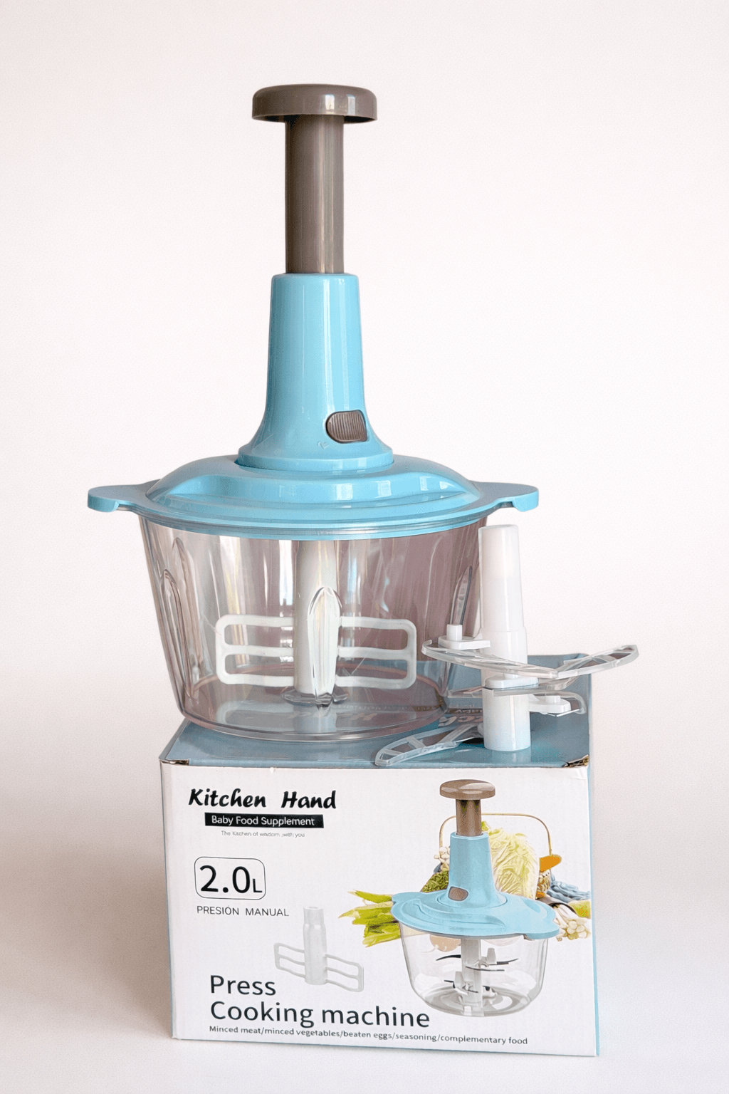Hachoir manuel avec bol 2L et lames solides. Idéal pou hacher légumes, viande, ail ou oignons rapidement, sans électricité. Pratique, facile à nettoyer et parfait pou cuisine quotidien. 🔪✨